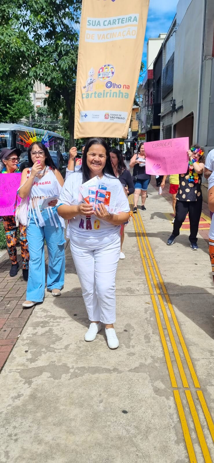 As mulheres participaram nesta manhã de quarta-feira (12), no território da Vila Clementino em parceria com a UBS Vila Mariana, da terceira edição da “Caminhada pelo Fim da Violência e Assédio contra as Mulheres”. A caminhada é uma ação aos protocolos “Não é Não” e “Não se cale”, para prevenção ao constrangimento e à violência contra a mulher e para proteção à vítima.